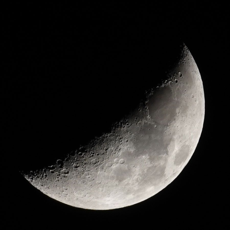 | 25.-26.12 | Mond | Erk | LT25 | Sony RX10 M4 | Mond einen Tag/zwei Tage vor Halbmond fotografiert und beobachtet | Mit Fernglas am 26.12. beobachtet: M 45, Mel 25, M 15, M 42/43, M 31 |