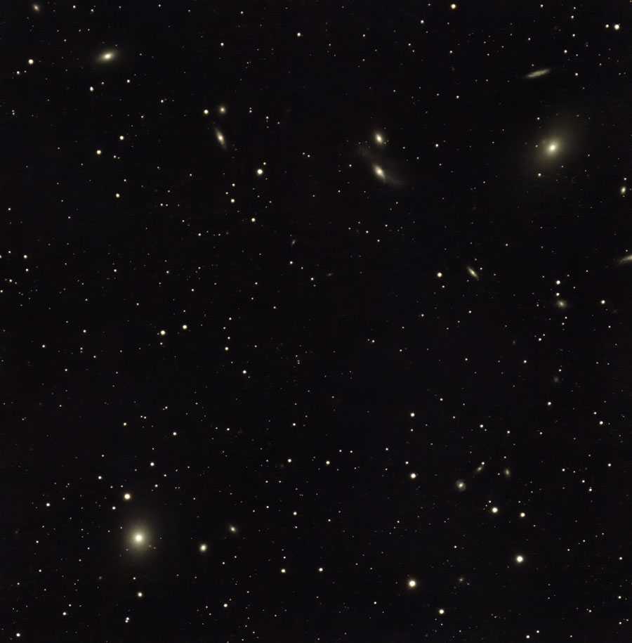 The lenticular galaxies NGC 4435 and NGC 4438 are also called "The Eyes" or "Markarian's Eyes". They can be taken as the starting point for a mosaic of Markarian's chain (from NGC 4477 to M 84) (more precisely: NGC 4438). |