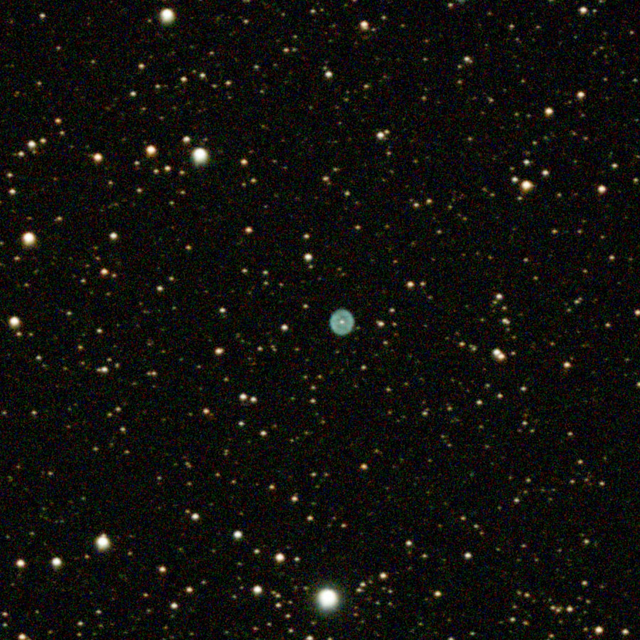 According to Stoyan, one of the most beautiful planetary nebulae in the autumn sky, which appears in the small telescope as an even blue disc. In the VPro it appears as a prominent but small blue spot. |