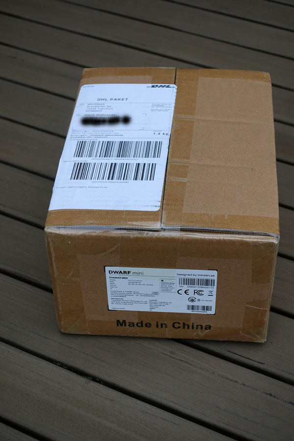 Hier zeige ich Fotos vom Auspacken des Dwaqrf mini ("Unboxing"), des Teleskops selbst und seines zunächst mitgelieferten Zubehörs (inklusive des extra zu kaufenden Stativs).