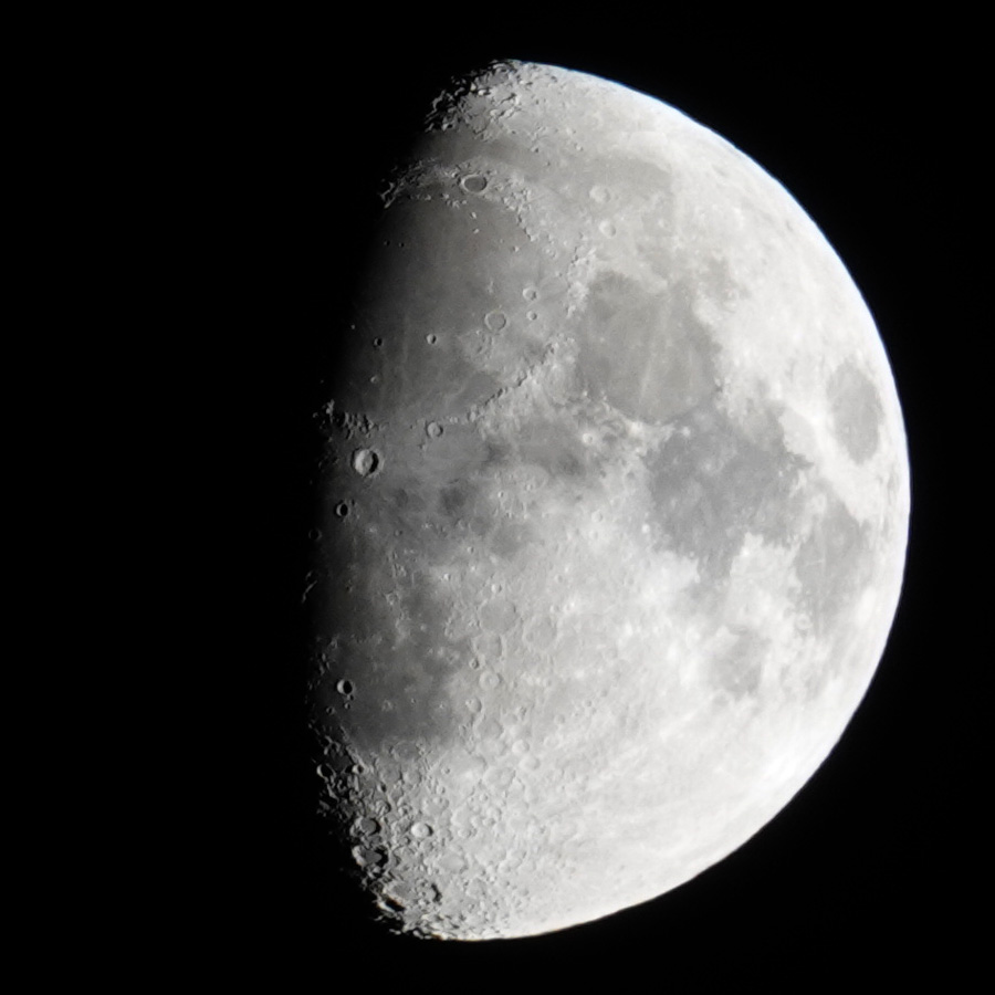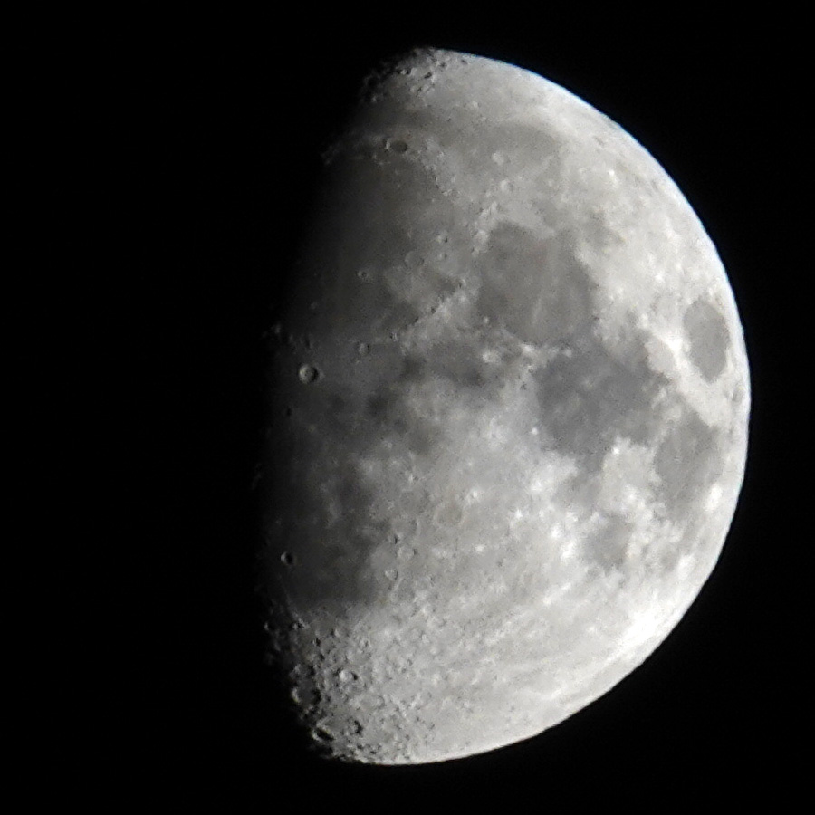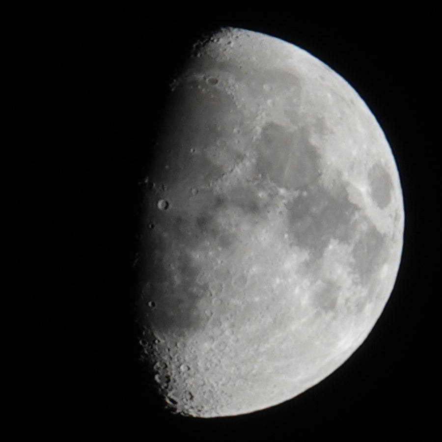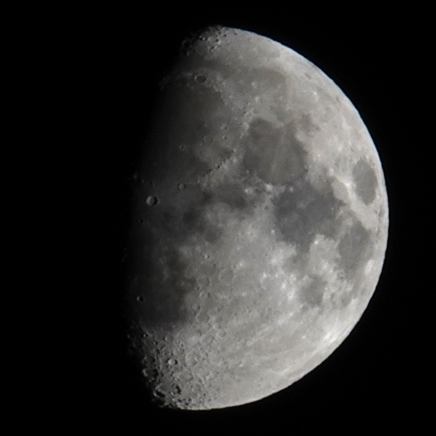 I got decent results on the tripod starting at 1/20s, but with a shorter exposure times (1/30...1/60s), the results got even better, maybe because the aperture could be opened wider. Shutter speeds of 1/125s and 1/250s already deliver very good results, especially since the aperture can then be wide open, as the RX10 M4 is optimized for open apertures. In addition, the moon is in the center of the image (900 pixels square), where the image quality is best. However, I often photograph the moon handheld and then select 1/500s or even 1/1000s as the exposure time to rule out possible "shake" and "blur" effects.