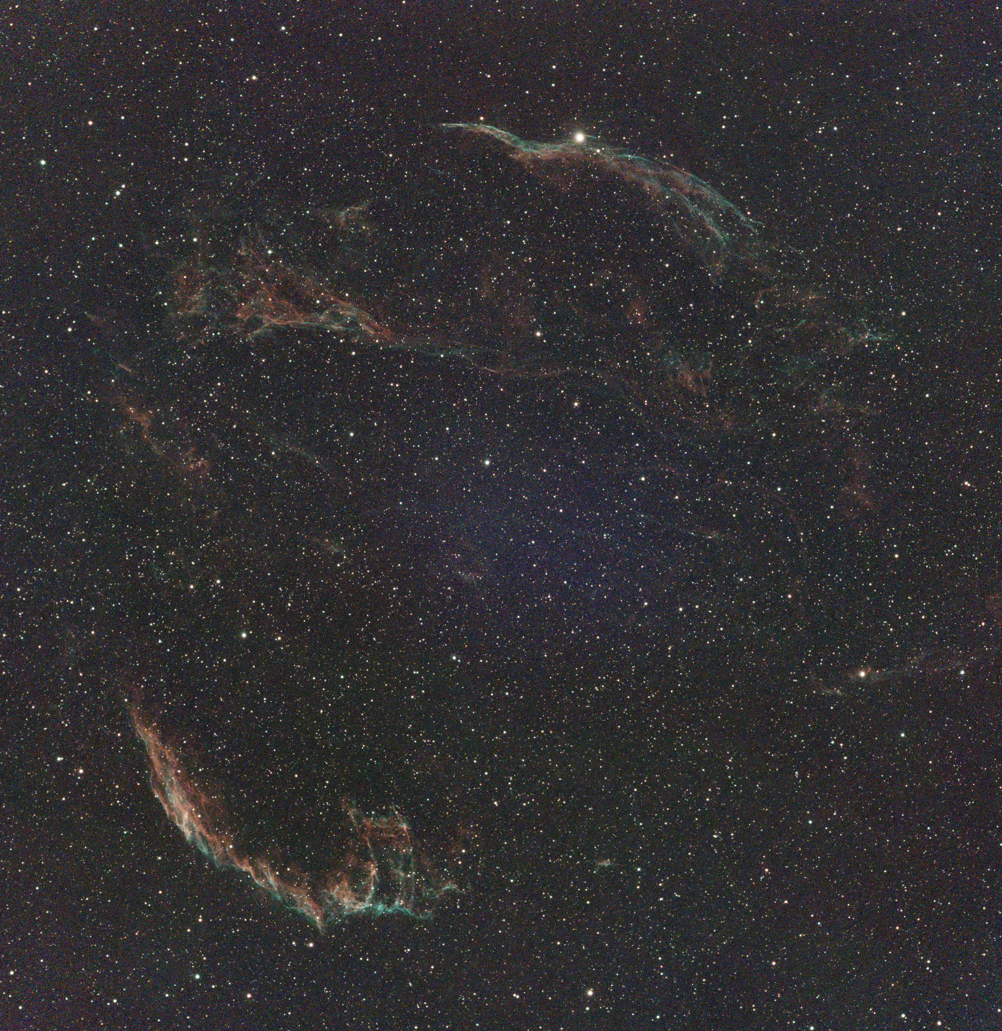 NGC 6960 and 6992/5 (Cygnus Loop), Sep 19, 2025 - 2000 (666 frames = 1:51 h), from TIFF, processed, denoised (PA) |