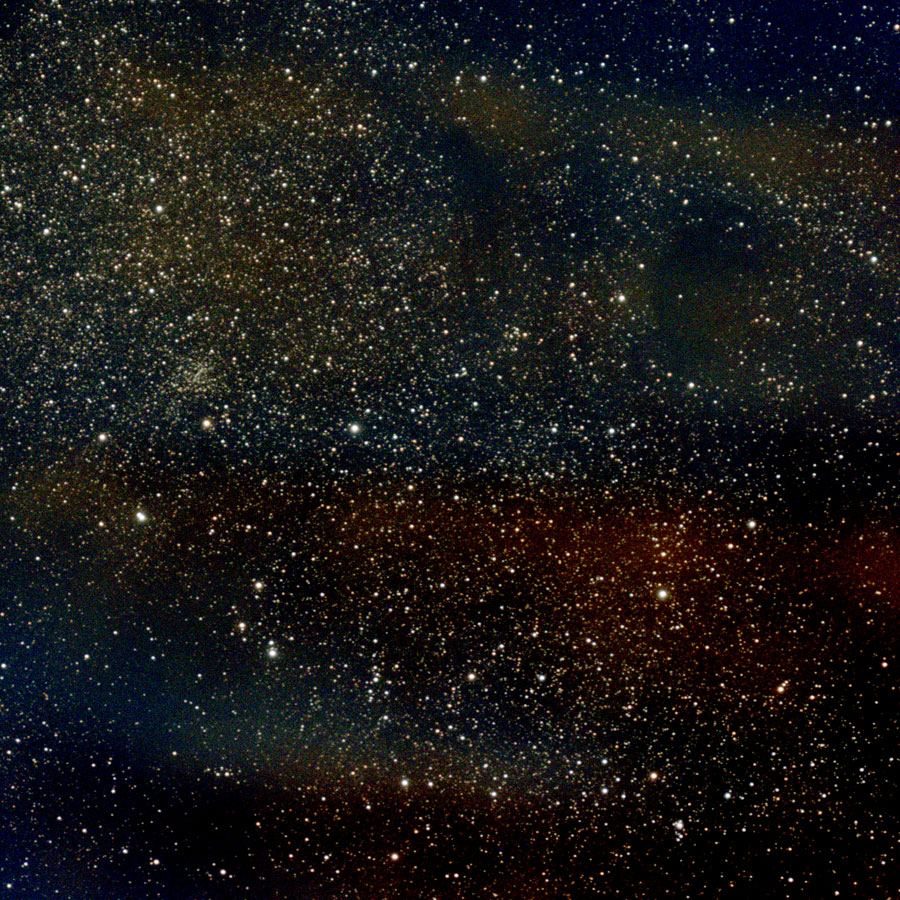 Embedded in M 24 are the open star cluster NGC 6603 and the dark nebulae B 92 and B 93. Next to B 93, there is also the small open star cluster Cr 469.