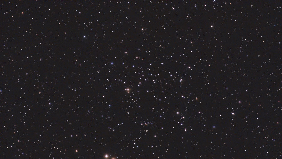 The open star cluster M 34 is located in the constellation Perseus to the West of the bright star Mirfak. According to Karkoschka and Stoyan, it is primarily an object for binoculars, but they also recommend to look at the cluster's center with a small telescope (that is, at low magnification).