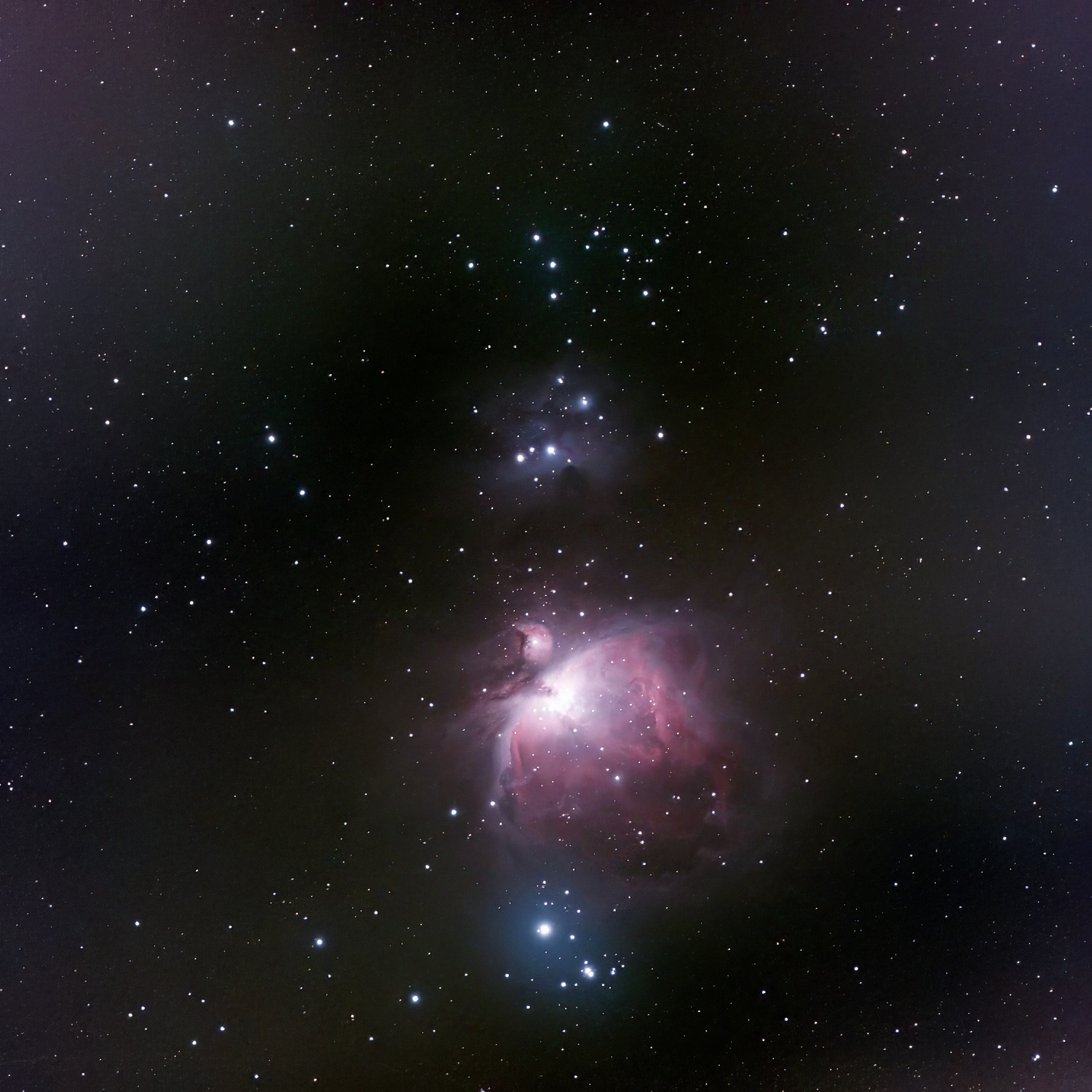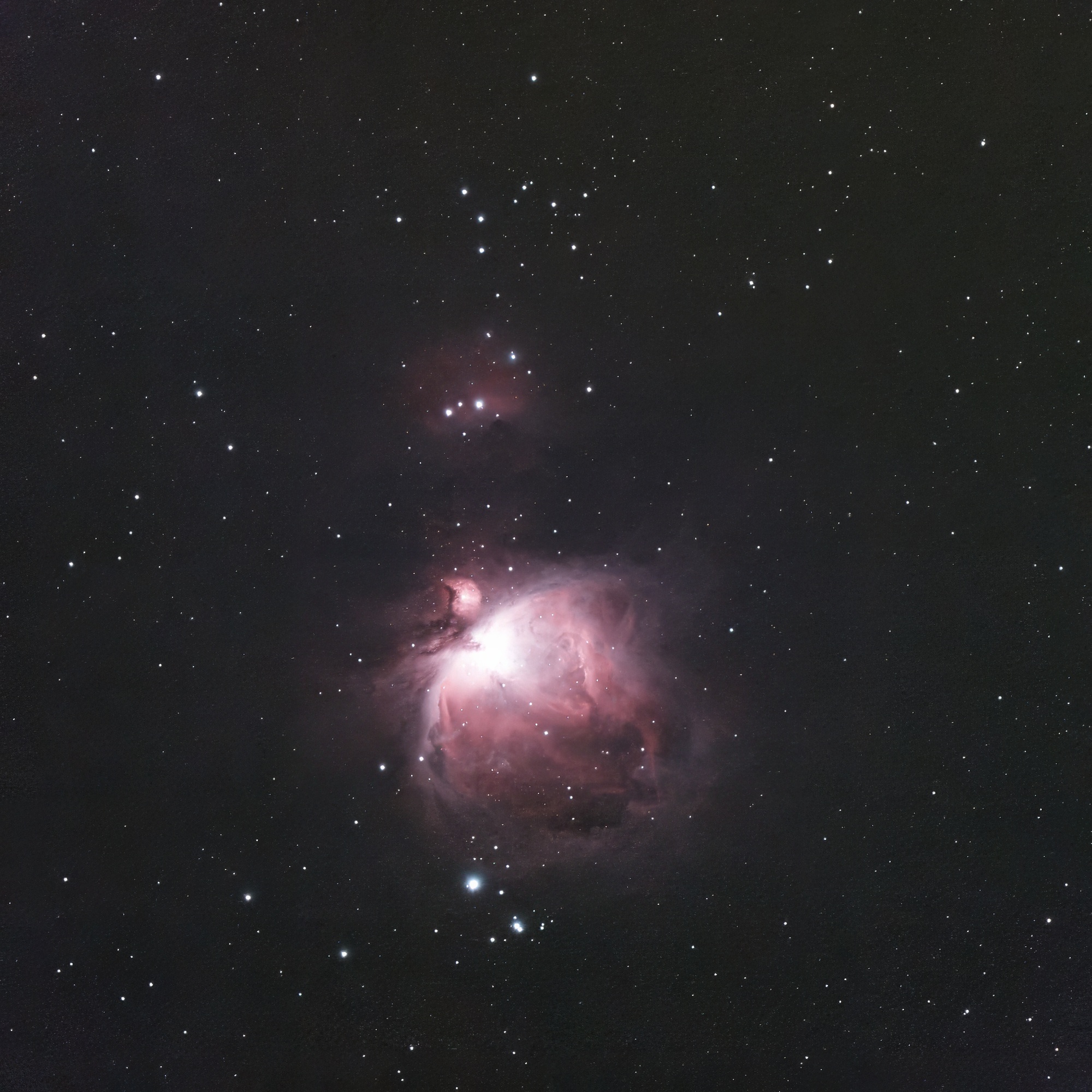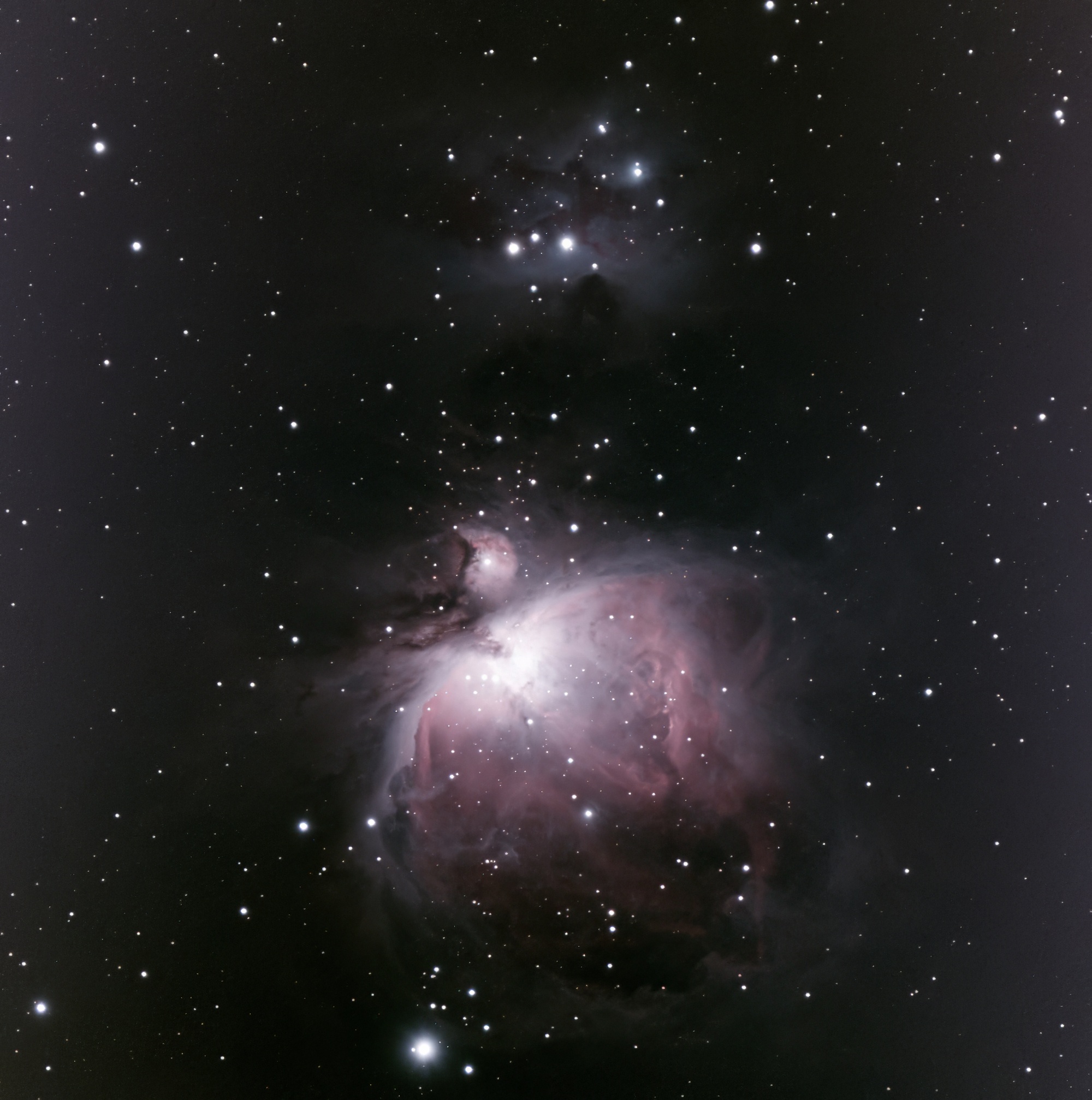 M 42/43 mit NGC 1977, 1980 und NGC 1981, 18.1.2023 - groß (241 Frames = 2410s), Mosaik, Ausschnitt, bearbeitet |