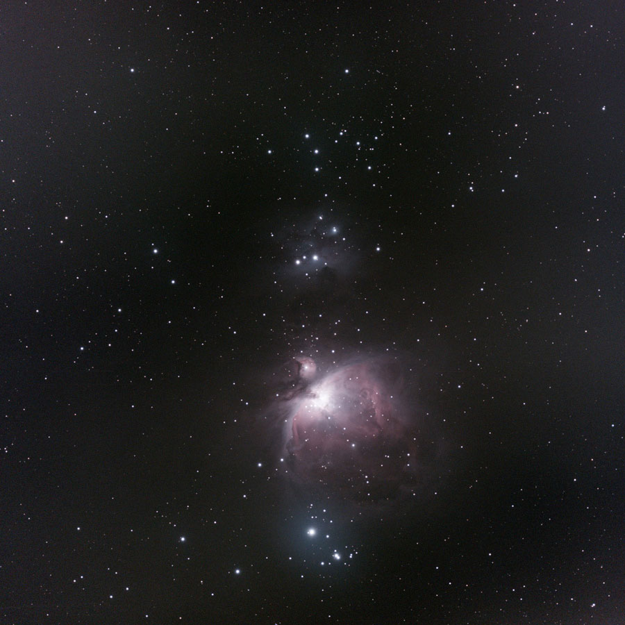 M 42/43 mit NGC 1977, 1980 und NGC 1981, 18.1.2023 - Original (241 Frames = 2410s), Mosaik, Ausschnitt |