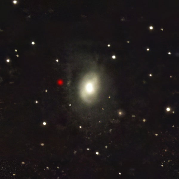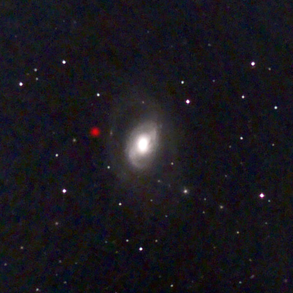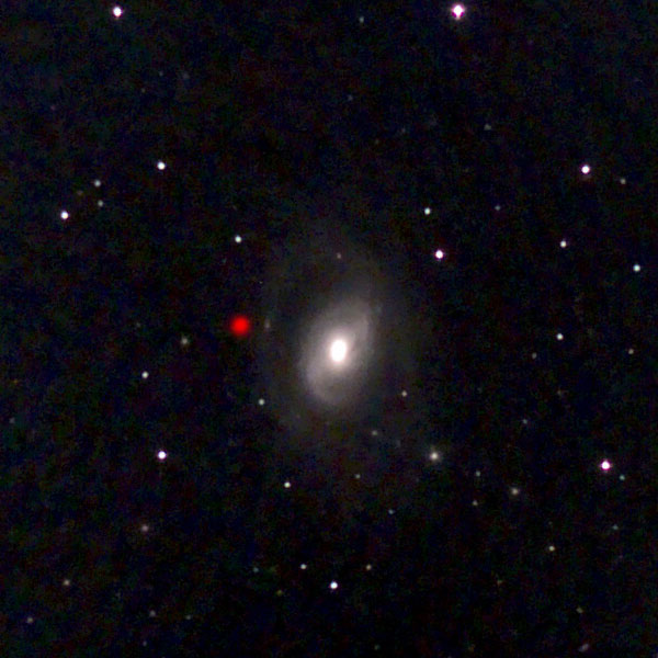Die Galaxie 2MFGC 8391 ist nach den meisten Angaben im Internet zwischen 700 und 800 Millionen Lichtjahre entfernt (eine Quelle nennt das 4-fache der M 96-Entfernung, also 160 Millionen Lichtjahre), und damit wohl das am weitesten entfernte Objekt, das ich bisher fotografiert habe. Für ein Hubble-Fote von M 96 mit der Galaxie siehe de.wikipedia.org/wiki/Messier_96. Dieses Foto zeigt die Galaxie so gut, dass ich mir gar nicht vorstellen kann, dass sie so weit entfernt sein soll.