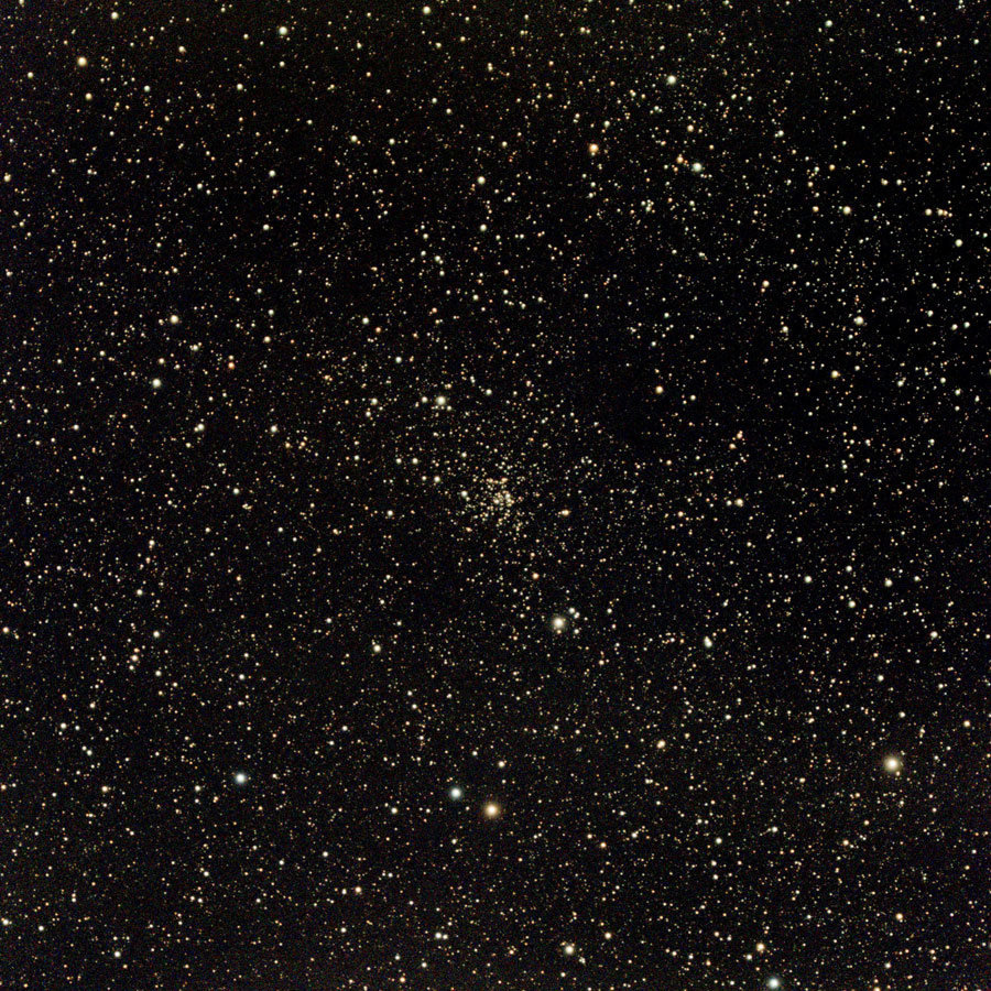 The open star cluster NGC 559 in the constellation Cassiopeia is close to the left star of the "W" that forms the constellation Cassiopeia.