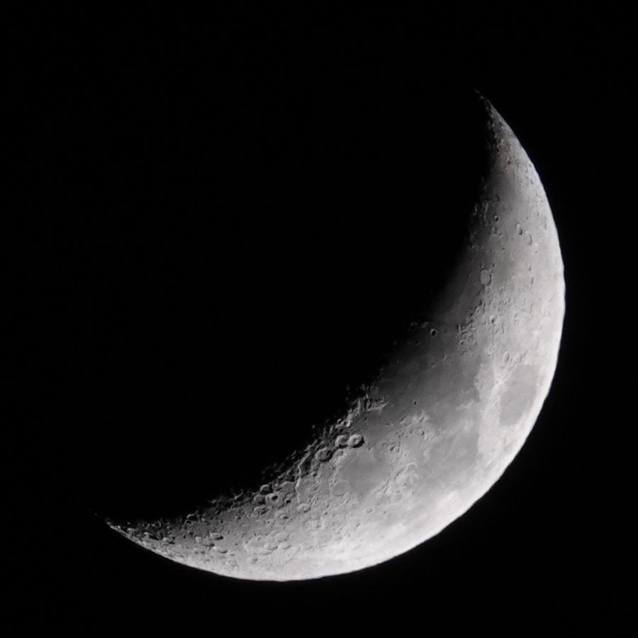 Fotos der Mondsichel mit Saturn (Sony RX10 M4)