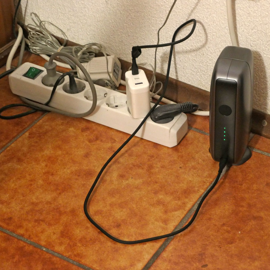 - An der Powerbank lädt das DM nicht, mal zeigt es an, dass sie dran ist, mal nicht; am Computer lädt das DM, aber langsamer als am USB-C-Netzteil.