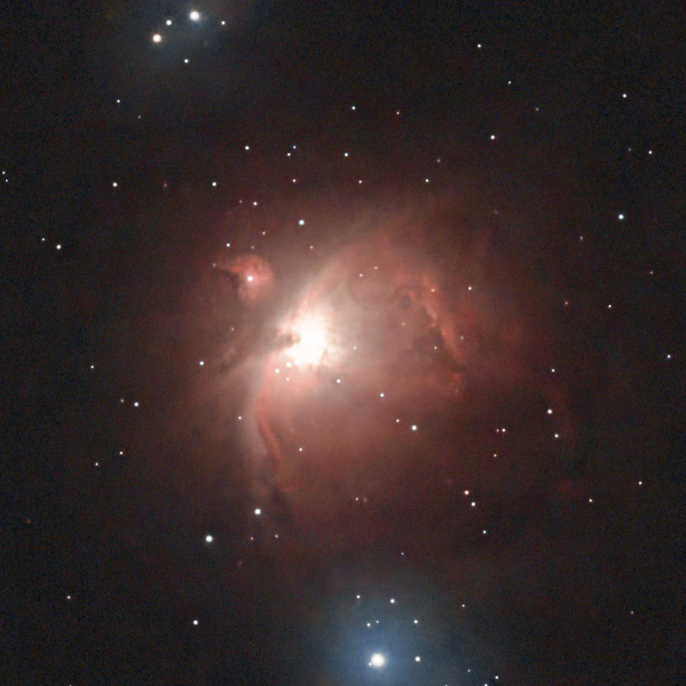 - Startete gegen 19:30 Uhr im EQ-Modus ein 2-Panel-Mosaik (1:1,8) für M 42/43 (Coal Car Cluster bis Jewels) (30/120/Astro; 50 subs je Panel); SQM 19,8; Ende um 20:41 Uhr.
