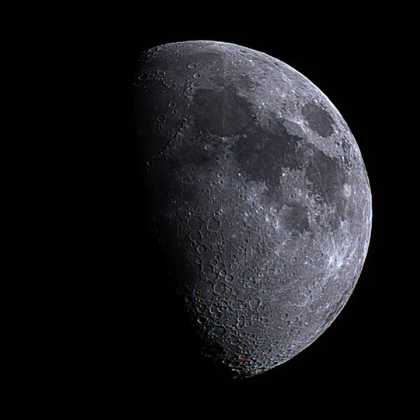Wie viele km ein Pixel tatsächlich ergibt, kann ich noch nicht genau sagen. Anhand meiner Fotos habe ich das mal überschlagen: 3476 km / 500 Pixel = 7 km (habe den Monddurchmesser zu 500 Pixeln abgeschätzt). Vermutlich sind 8 km realistischer...