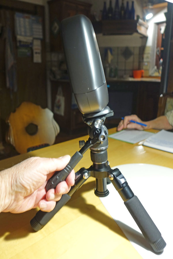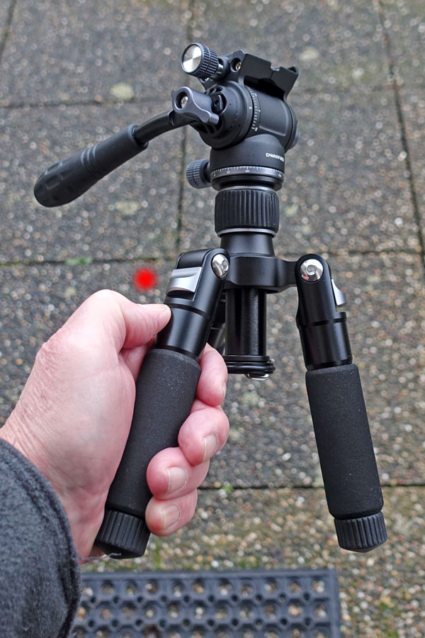 Die Stativbeine können in 5 Stufen (5 Segmente) ausgezogen und in drei verschiedenen Winkeln (steil, schräg, flach) aufgestellt werden. Im folgenden einige Demo-Beispiele: