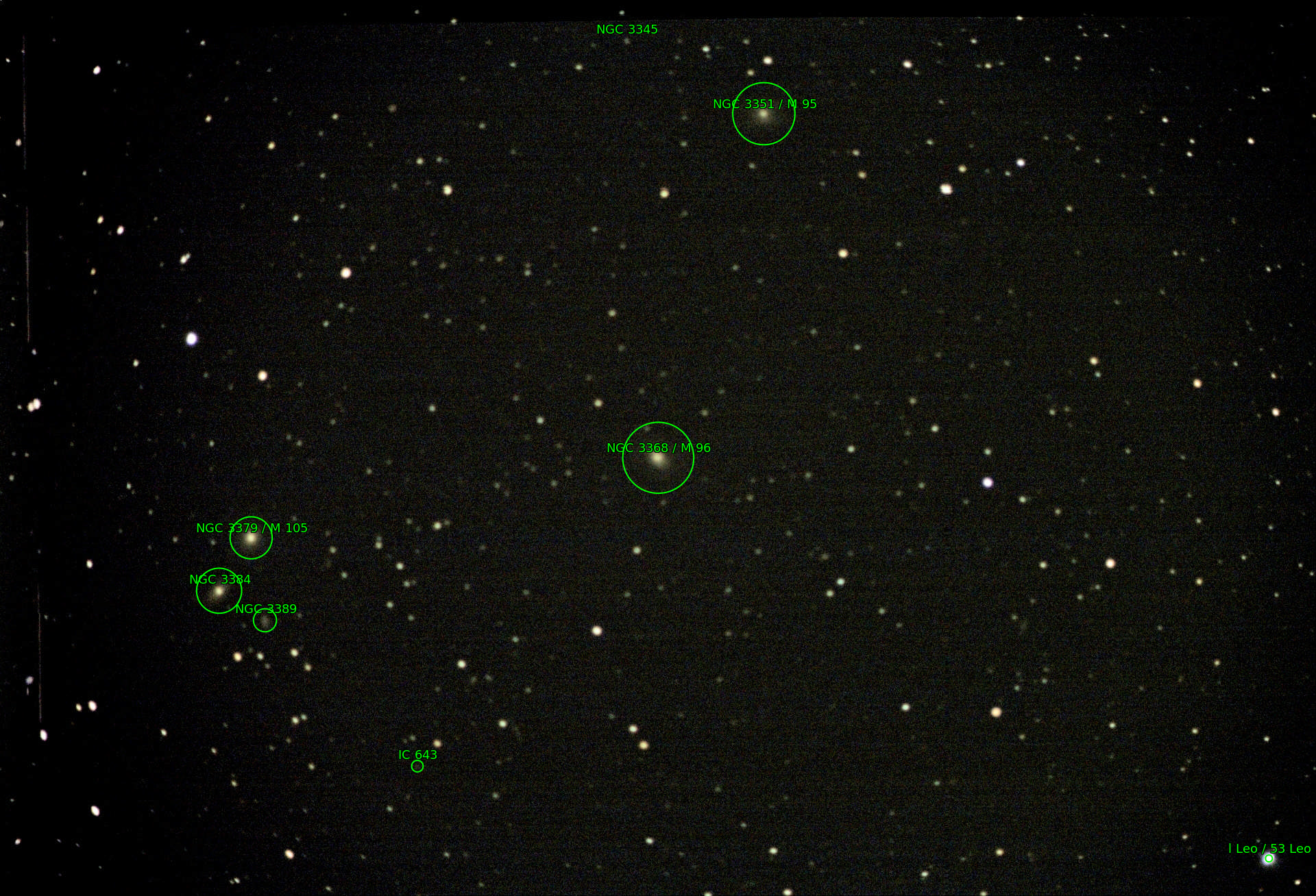 Larger galaxies: M 105, M 96 (, M 95), NGC 3367, NGC 3384/89, NGC 3412