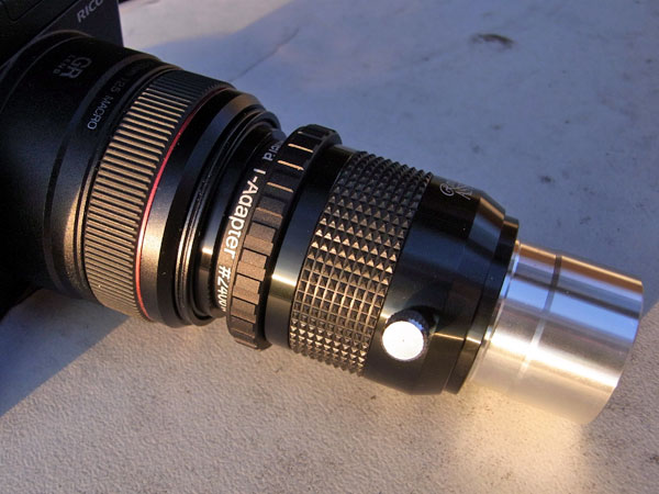 Prolog... | Eyepiece and Adapters | Camera Attached to Eyepiece | Camera Attached to Heritage P130 Telescope | Result: Photo of the Full Moon | Camera Attached to Meade 10" Dobson Telescope | Result: Photos of the Quarter Moon | Result: Venus, Jupiter, ISS?