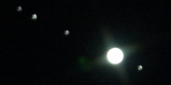 Attempt from April 23, 2015 with - fuzzy - moons (Jupiter gets too bright when you attempt to capture the moons):