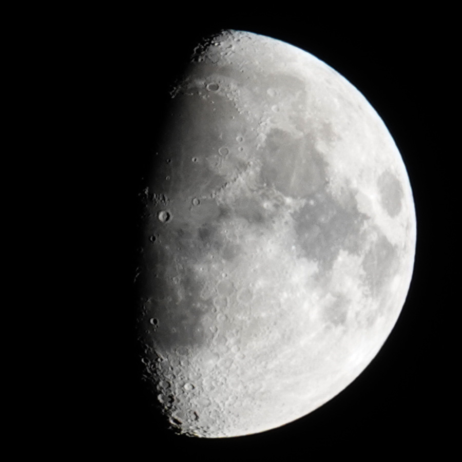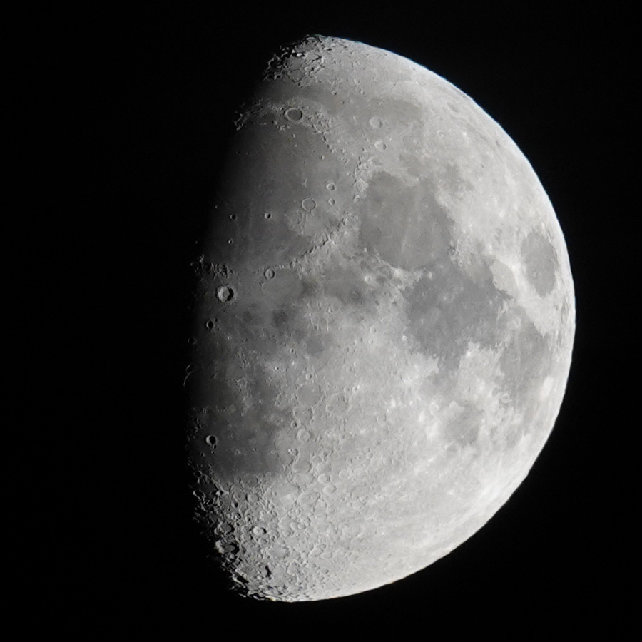 I got decent results on the tripod starting at 1/20s, but with a shorter exposure times (1/30...1/60s), the results got even better, maybe because the aperture could be opened wider. Shutter speeds of 1/125s and 1/250s already deliver very good results, especially since the aperture can then be wide open, as the RX10 M4 is optimized for open apertures. In addition, the moon is in the center of the image (900 pixels square), where the image quality is best. However, I often photograph the moon handheld and then select 1/500s or even 1/1000s as the exposure time to rule out possible "shake" and "blur" effects.