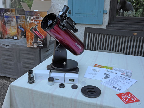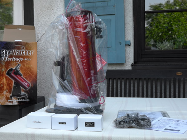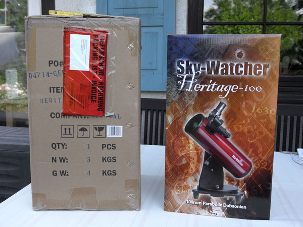 On this page, I present some information about my travel telescope Sky-Watcher Dobson Telescope Heritage 100P (Dobson; purchased at the beginning of July, 2015). See the appendix for the data.