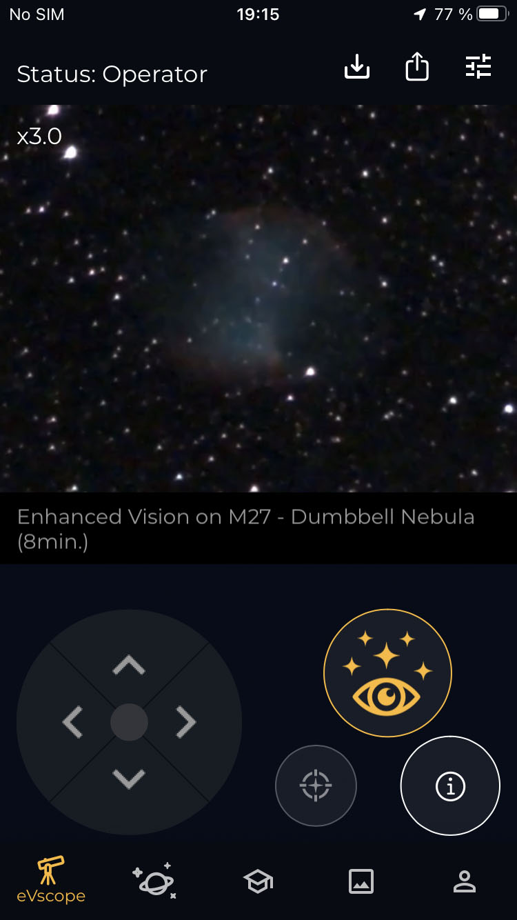 Unistellar points out that the eVscope (2) should be taken outside to cool down for about fifteen minutes before observation (remove the lid!). As long as the air forms streaks, the image results will look blurry, especially if you stay longer in EV mode.