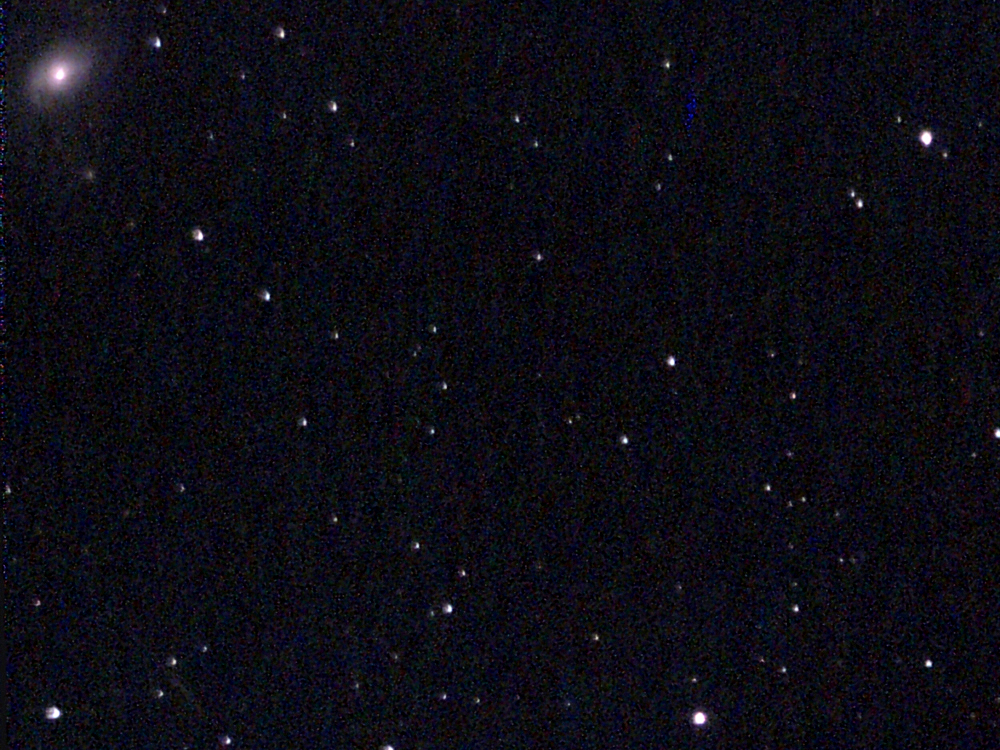 Diese Aufnahmen wurden einen Tag nach Vollmond und damit unter schlechten Himmelsbedingungen aufgenommen (allerdings etwas besseren als an den vorhergehenden Tagen, weil der Mond weiter von den DSO entfernt war).