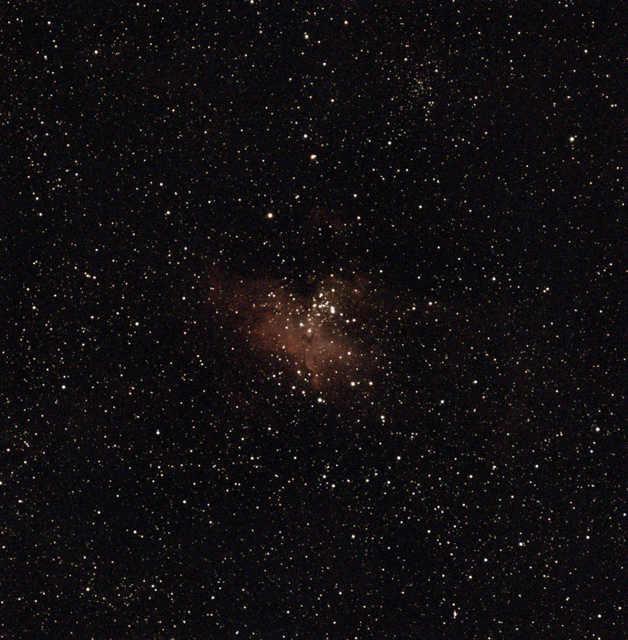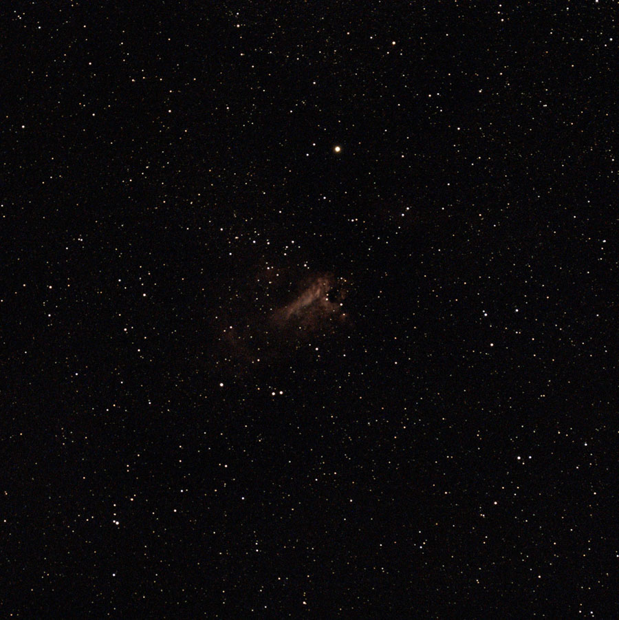 Comment: After 50-60 minutes you might be able to make out a bit of the nebula, but even after 80 minutes you cannot see much. At least the post-processing shows that you can "get something out" with the right tools, but much longer exposure times are necessary for good results.