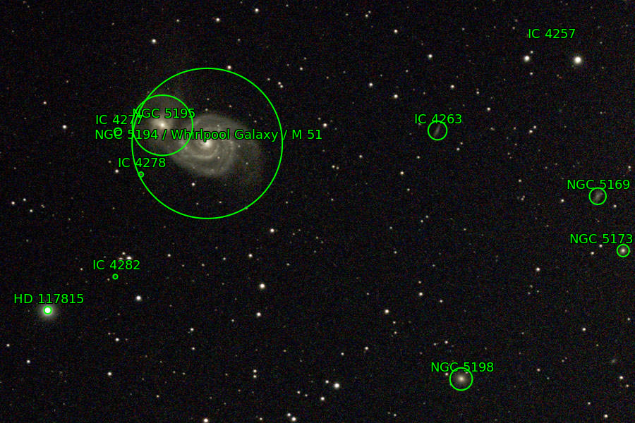 *) Further galaxies (apart fromM 51 and NGC 5195): IC 4257, IC 4263, IC 4277, IC 4278, IC 4282, IC 4284, IC 4285, NGC 5169, NGC 5173, NGC 5198