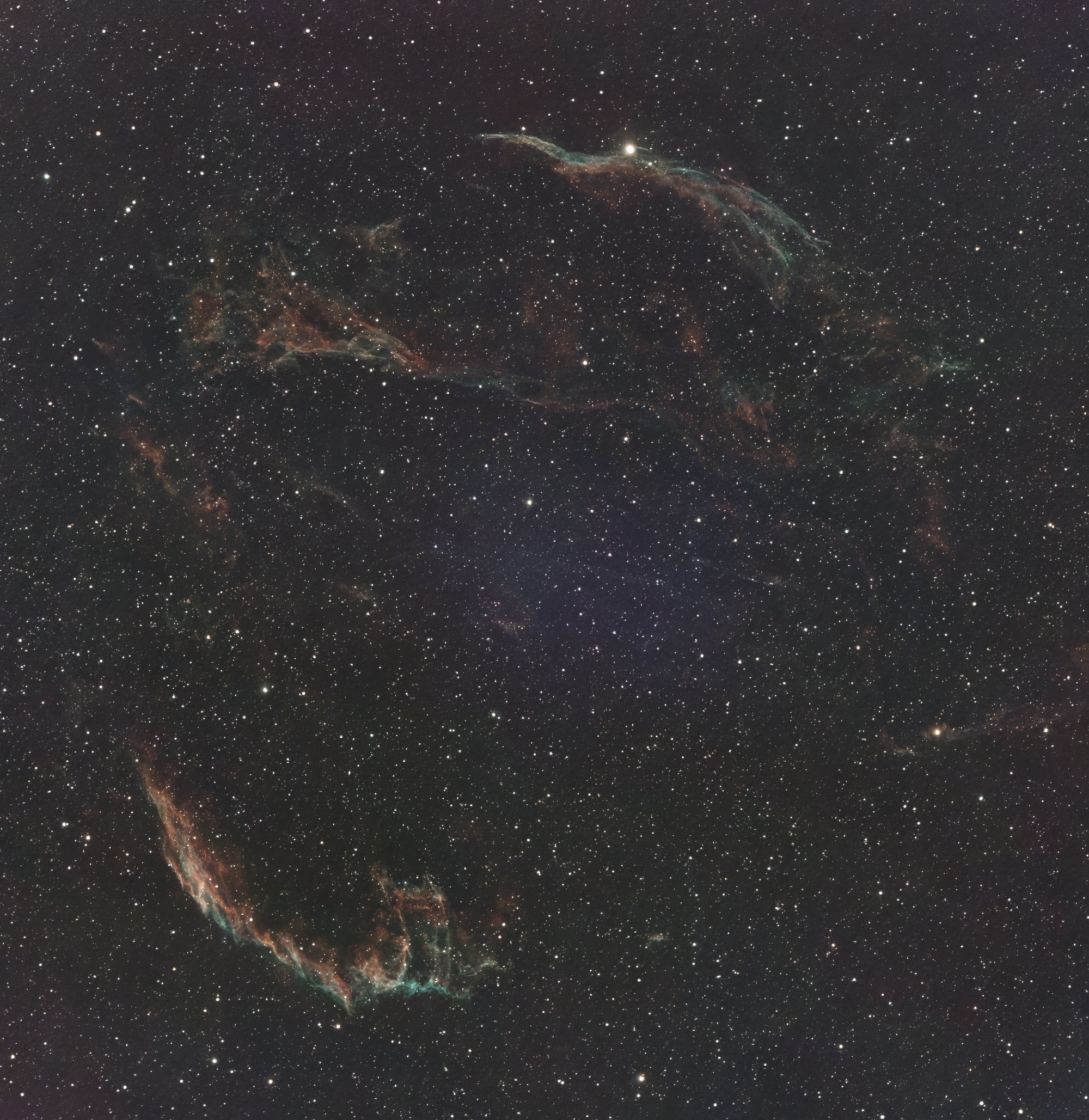 NGC 6960 and 6992/5 (Cygnus Loop), Sep 19, 2025 - 2000 (666 frames = 1:51 h), from TIFF, processed, denoised (PA) |