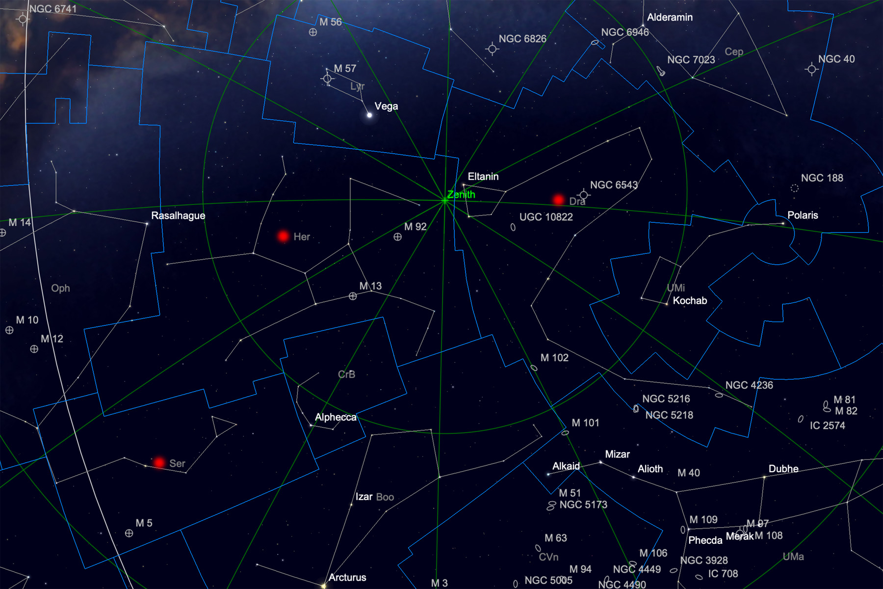 On my Vespera constellation pages I present objects that are located in the corresponding constellations. This page shows DSO in the constellations of Hercules, Serpens Cauda, and Draco.
