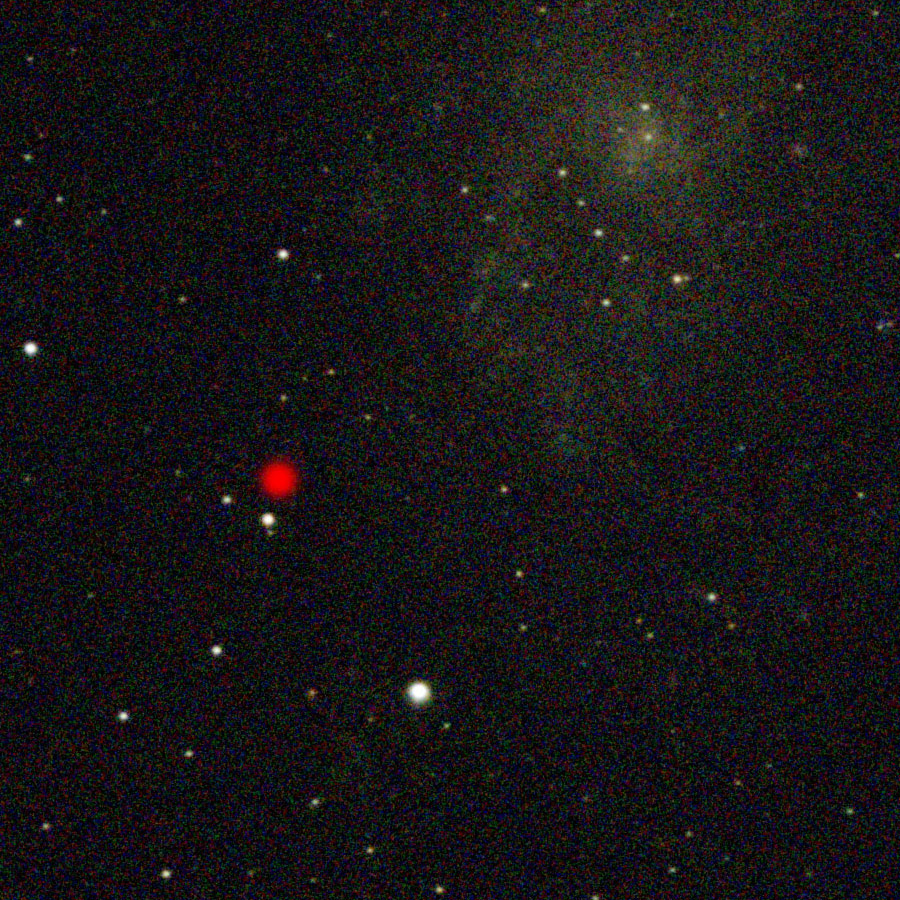 I then looked at photos with shorter integration times and found shorter trails there. Of course, the galaxy became weaker and weaker. I show some examples below! I was surprised to see that Eros was already visible "like a star" in the first photo, i.e., after 10 seconds (of course, you can hardly see anything of the galaxy)! I had actually expected Eros to be removed by the stacking algorithm over time, leaving no trace, but that was not the case. And the "initial star" also remained until the end, which surprised me a little. That is why I initially thought it was a star, but this "star" is not present in older comparable photos (see further down), which also proves that it is Eros. Incidentally, the planetary trail looks a little "double"; this is probably also due to the stacking.