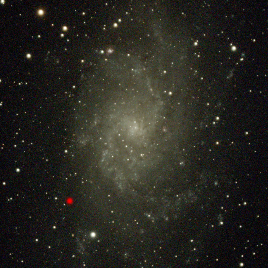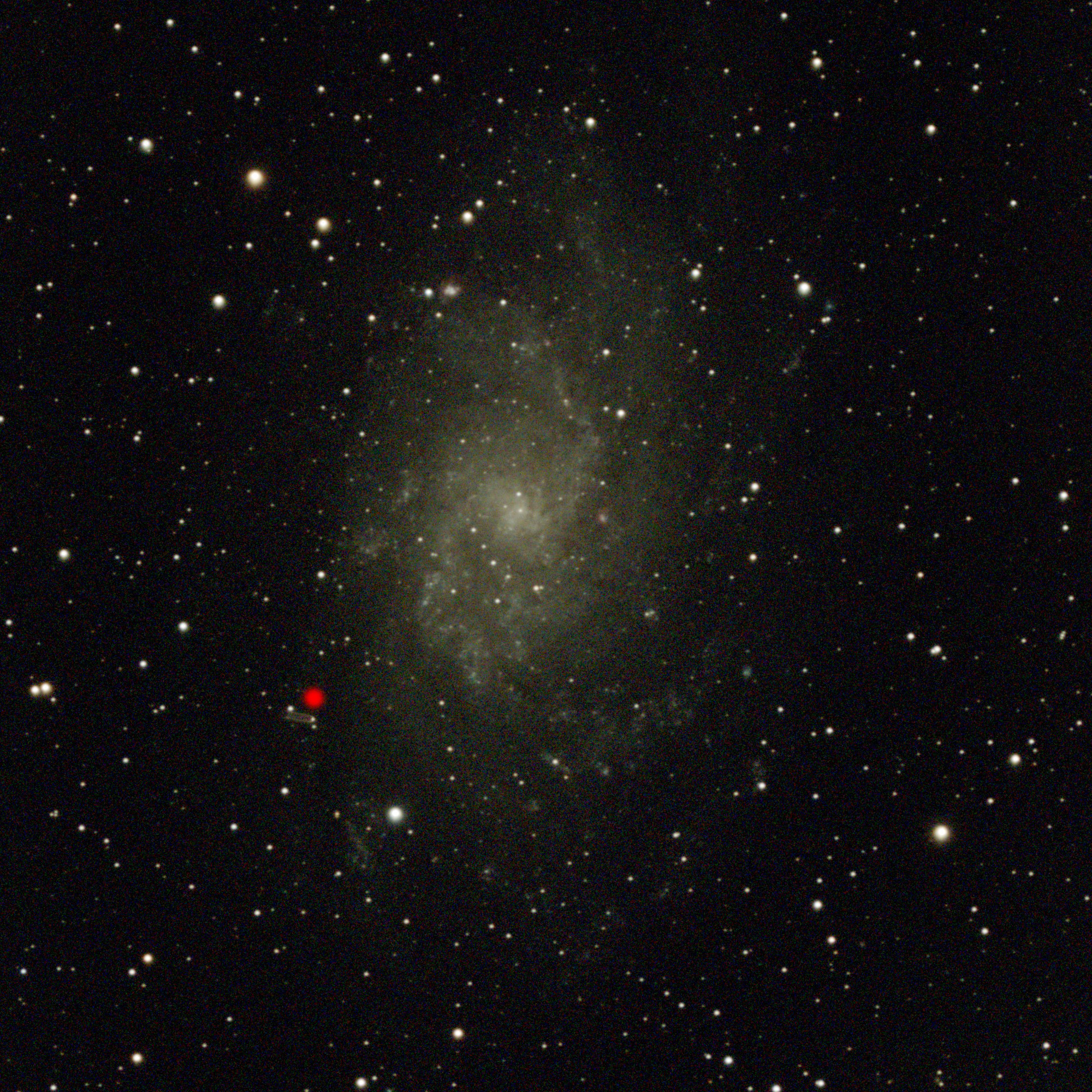 Perhaps it would have made sense to expose M 33 several times with 5-15 minutes, depending on preference, and then Eros would have been almost still a point and repeatedly imaged in different places – and M 33 would also have been relatively easy to see. Maybe next time ;)
