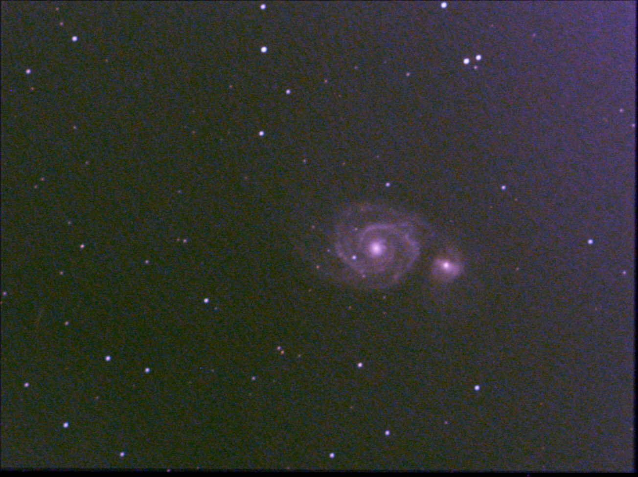 M 51 (20 frames, 12 s, gain 300), SharpCap, WithDisplayStretch, bearbeitet, ohne UV/IR-Cut-Filter |