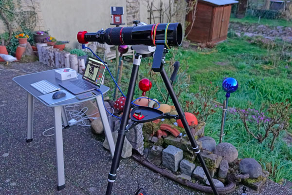 Software: Noch ist für mich offen, ob ich die Kamera mit der freien ZWO-Software ASILive oder der bewährten Software SharpCap betreiben werde... Alternativ habe ich versucht, die Kamera am StellarMate-Astronomiecomputer zu betreiben, wobei ich letzteren noch nicht wirklich zum Laufen gebracht habe (Stand April 2022).