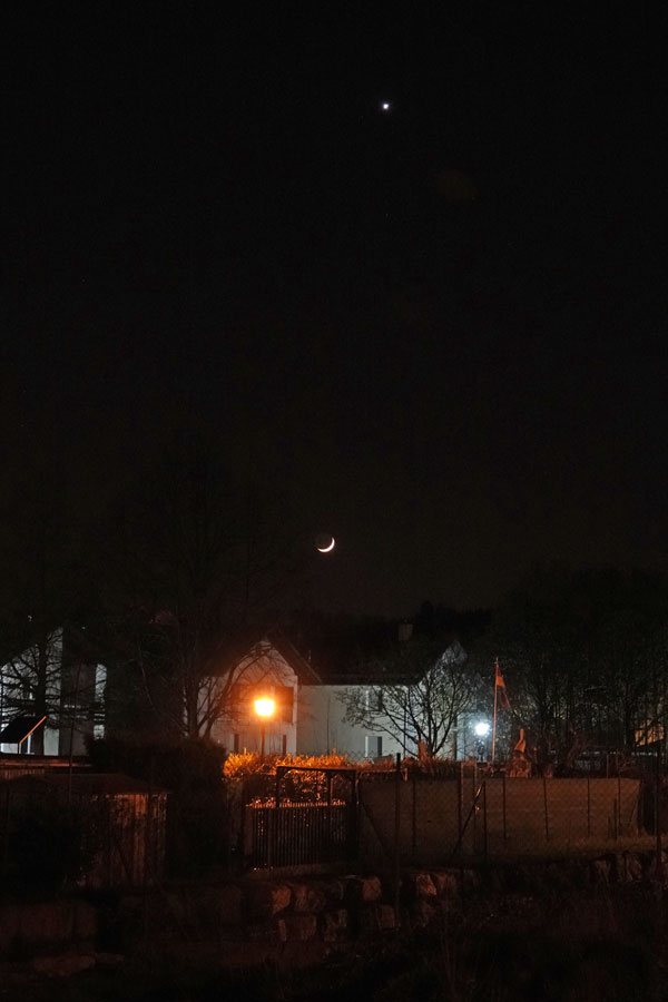 Crescent of the Moon and Venus taken with RX10 M4; Venus can be better seen in larger versions.