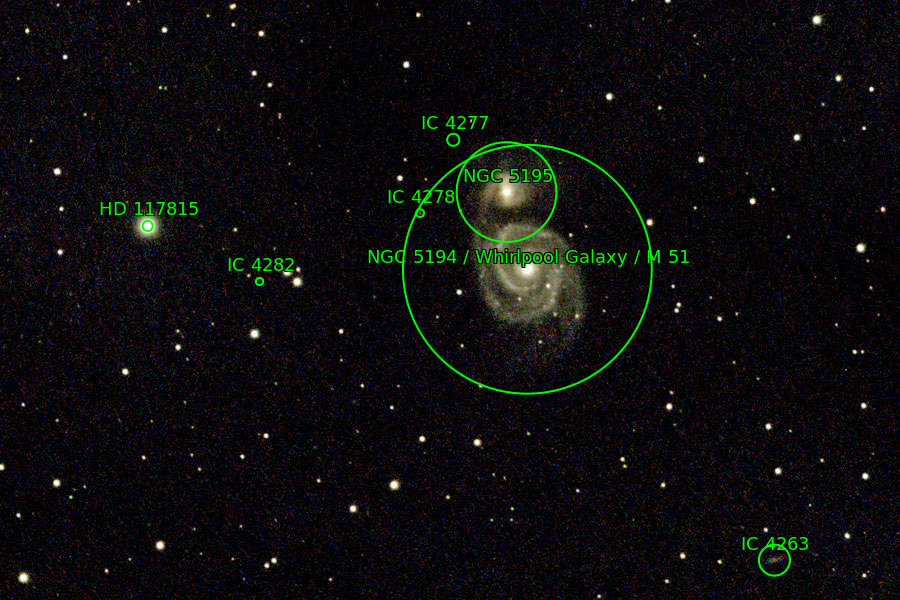 On a Vespera Pro photo, I was able to find the further following galaxies: IC 4257, IC 4263, IC 4277, IC 4278, IC 4282, IC 4284, IC 4285, NGC 5169, NGC 5173, NGC 5198.