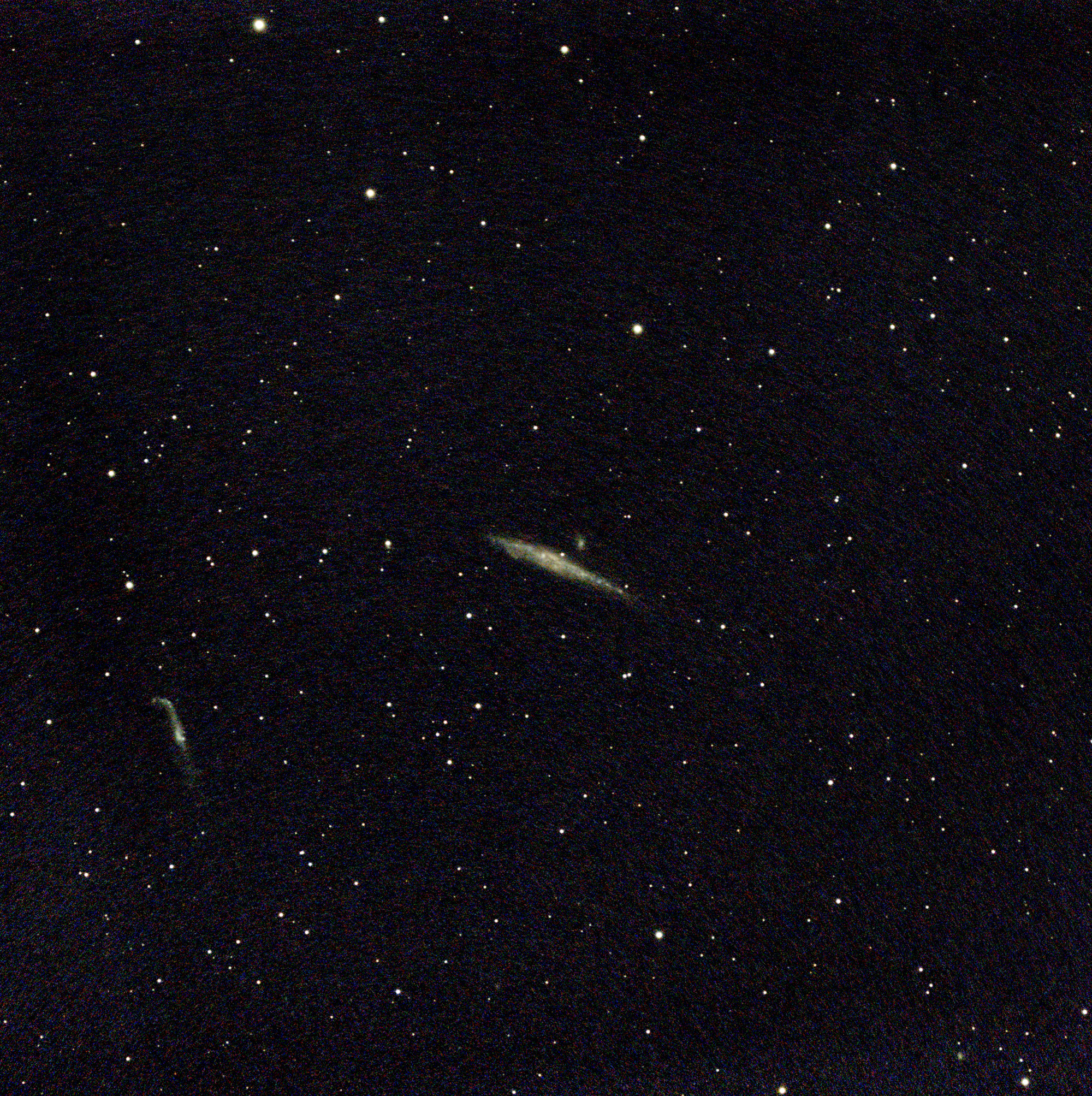 NGC 4631 with NGC 4627 above and NGC 4656/57 lower left, May 25, 2024 - 2000p (180 frames = 1800s), additionally denoised (DN) |